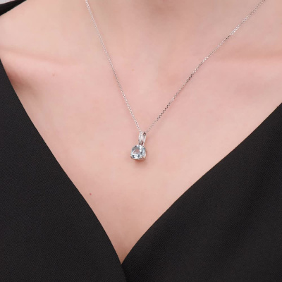 Подвеска с 6 бриллиантами природными, 0.01 карат, огранка круг 17 граней, цвет 2, чистота 2, тип огранки Б; 1 топазом скай природным, 2.72 карат; Белое золото 585 пробы.