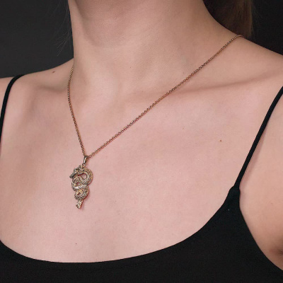 Подвеска с 53 бриллиантами природными, 0.26 карат, огранка круг 17 граней, цвет 2, чистота 2, тип огранки А; Желтое золото 585 пробы.
