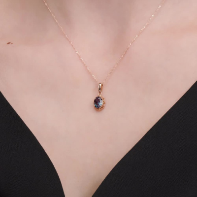 Подвеска с 1 александритом синтетическим, 1.51 карат; Розовое золото 585 пробы.