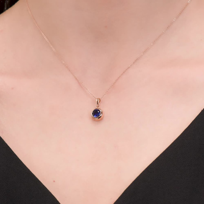 Подвеска с 1 сапфиром синтетическим, 1 карат; Розовое золото 585 пробы.
