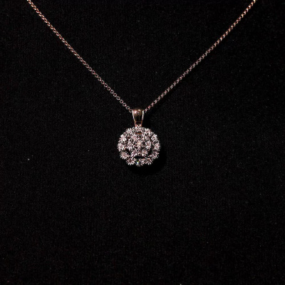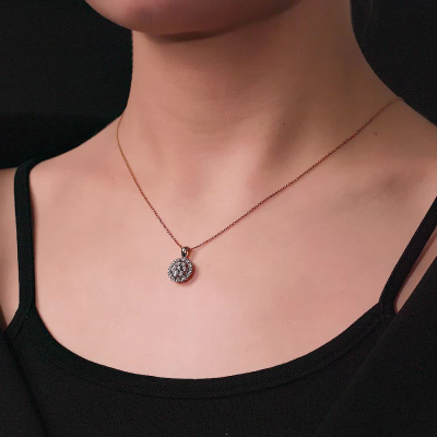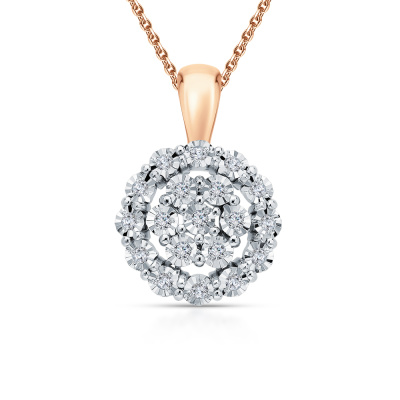 Подвеска с 19 бриллиантами природными, 0.16 карат, огранка круг 57 граней, цвет 3, чистота 6; Розовое и белое золото 585 пробы.