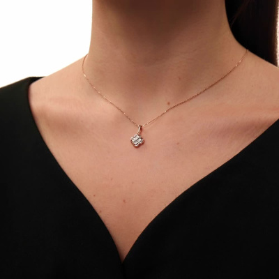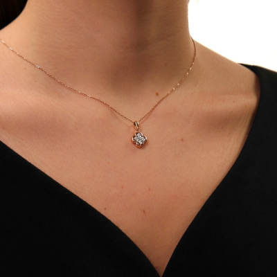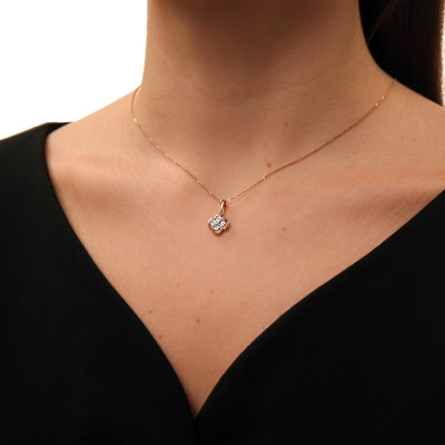 Подвеска с 4 бриллиантами природными, 0.01 карат, огранка круг 17 граней, цвет 2, чистота 2, тип огранки А; Розовое и белое золото 585 пробы.