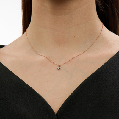 Подвеска с 1 бриллиантом природным, 0.02 карат, огранка круг 57 граней, цвет 3, чистота 6, тип огранки А; Розовое золото 585 пробы.