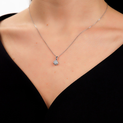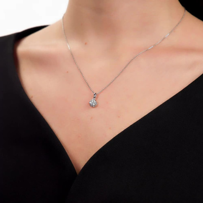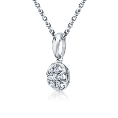 Подвеска с 1 бриллиантом природным, 0.06 карат, огранка круг 57 граней, цвет 3, чистота 6, тип огранки А; 6 бриллиантами природными, 0.11 карат, огранка круг 57 граней, цвет 3, чистота 6, тип огранки А; Белое золото 585 пробы.