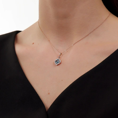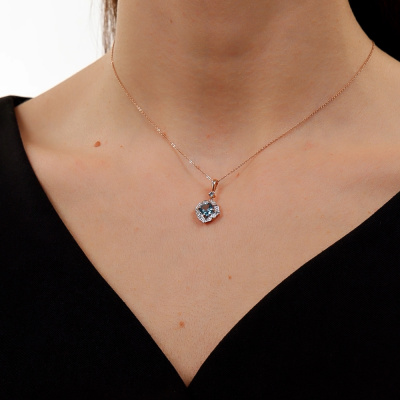 Подвеска с 16 бриллиантами природными, 0.05 карат, огранка круг 17 граней, цвет 2, чистота 2, тип огранки А; 1 топазом свисс природным, 1.17 карат; 1 топазом свисс природным, 0.04 карат; Розовое золото 585 пробы.