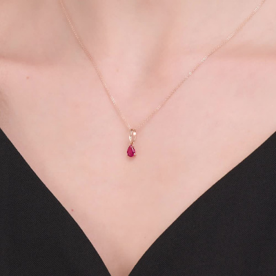 Подвеска с 1 рубином синтетическим, 0.45 карат; Розовое золото 585 пробы.
