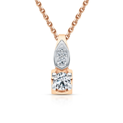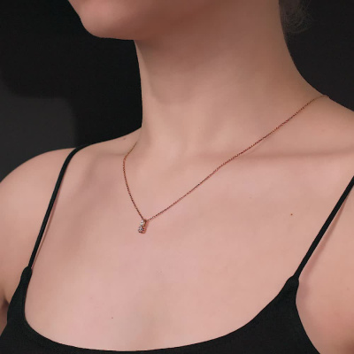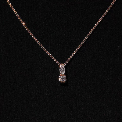 Подвеска с 1 бриллиантом природным, 0.08 карат, огранка круг 57 граней, цвет 3, чистота 6, тип огранки А; 1 бриллиантом природным, 0.01 карат, огранка круг 57 граней, цвет 3, чистота 6, тип огранки А; 3 бриллиантами природными, 0.006 карат, огранка круг 17 граней, цвет 2, чистота 2, тип огранки А; Розовое золото 585 пробы.