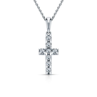Подвеска с 8 бриллиантами природными, 0.18 карат, огранка круг 57 граней, цвет 3, чистота 6, тип огранки А; Белое золото 585 пробы.