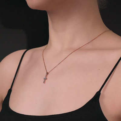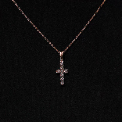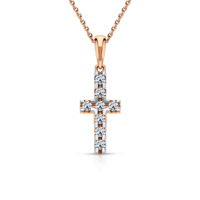 Подвеска с 8 бриллиантами природными, 0.18 карат, огранка круг 57 граней, цвет 3, чистота 6, тип огранки А; Розовое золото 585 пробы.