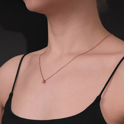 Подвеска с 1 бриллиантом природным, 0.07 карат, огранка круг 57 граней, цвет 3, чистота 6, тип огранки А; Розовое золото 585 пробы.