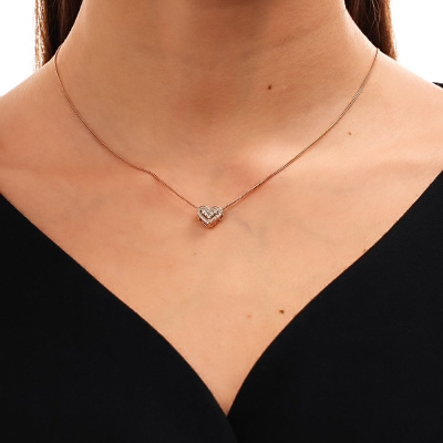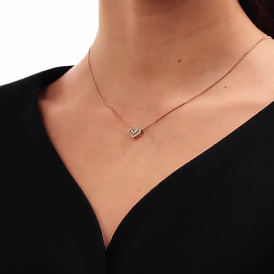 Подвеска с 5 бриллиантами природными, 0.06 карат, огранка круг 57 граней, цвет 4, чистота 5, тип огранки А; 22 бриллиантами природными, 0.04 карат, огранка круг 17 граней, цвет 2, чистота 2, тип огранки А; Розовое золото 585 пробы.