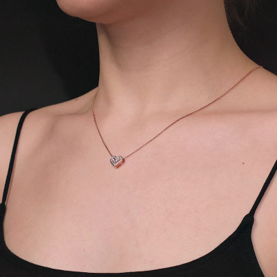 Подвеска с 5 бриллиантами природными, 0.06 карат, огранка круг 57 граней, цвет 4, чистота 5, тип огранки А; 22 бриллиантами природными, 0.05 карат, огранка круг 17 граней, цвет 2, чистота 2, тип огранки А; Розовое золото 585 пробы.