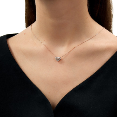 Подвеска с 22 бриллиантами природными, 0.04 карат, огранка круг 17 граней, цвет 2, чистота 2, тип огранки А; 5 бриллиантами коньячными природными, 0.07 карат, огранка круг 57 граней, цвет 7, чистота 5, тип огранки А; Розовое золото 585 пробы.