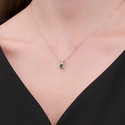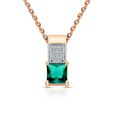 Подвеска с 9 бриллиантами природными, 0.01 карат, огранка круг 17 граней, цвет 2, чистота 2, тип огранки А; 1 гидротермальным изумрудом, 0.28 карат, тип огранки Б; Розовое золото 585 пробы.