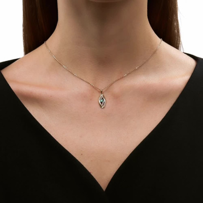 Подвеска с 6 бриллиантами природными, 0.02 карат, огранка круг 17 граней, цвет 2, чистота 2, тип огранки Б; 6 бриллиантами природными, 0.01 карат, огранка круг 17 граней, цвет 2, чистота 2, тип огранки Б; 1 гидротермальным изумрудом, 0.22 карат; Желтое золото 585 пробы.