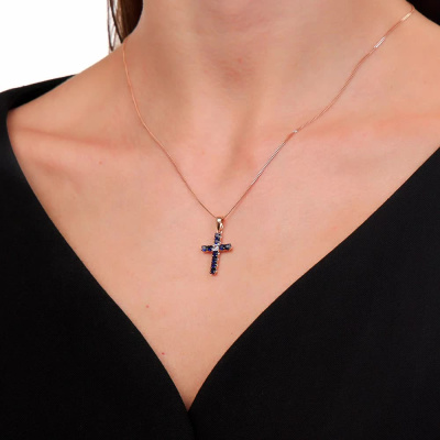 Подвеска с 10 сапфирами синтетическими, 0.8 карат; 1 сапфиром бесцветным природным, 0.07 карат; Розовое золото 585 пробы.