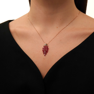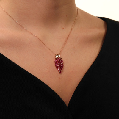 Подвеска с 3 рубинами синтетическими, 1.26 карат; 10 рубинами синтетическими, 2.43 карат; Розовое золото 585 пробы.