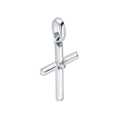 Подвеска с 1 бриллиантом природным, 0.01 карат, огранка круг 57 граней, цвет 3, чистота 6, тип огранки А; Белое золото 585 пробы.
