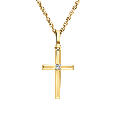 Подвеска с 1 бриллиантом природным, 0.01 карат, огранка круг 57 граней, цвет 4, чистота 6, тип огранки А; Желтое золото 585 пробы.