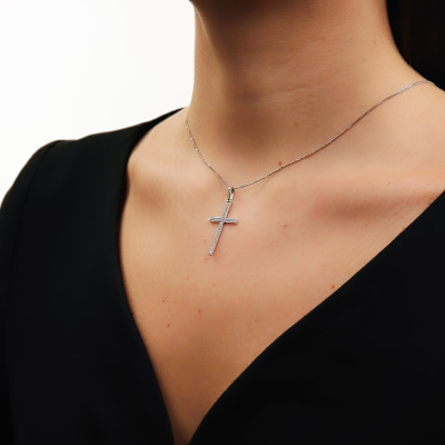 Подвеска с 35 бриллиантами природными, 0.1 карат, огранка круг 17 граней, цвет 2, чистота 2, тип огранки А; Белое золото 585 пробы.