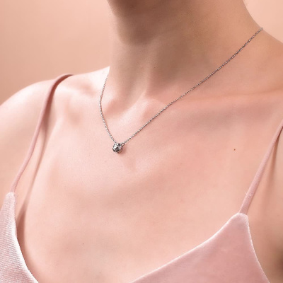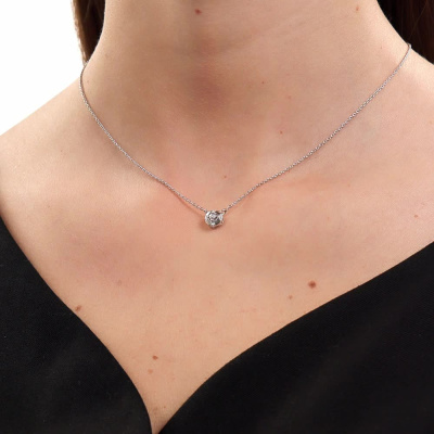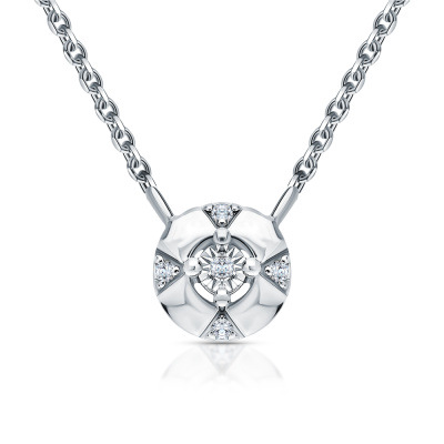 Шейное укр. с 5 бриллиантами природными, 0.02 карат, огранка круг 17 граней, цвет 2, чистота 4; Серебро 925 пробы.