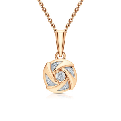 Шейное укр. с 5 бриллиантами природными, 0.02 карат, огранка круг 17 граней, цвет 2, чистота 3; Серебро 925 пробы.