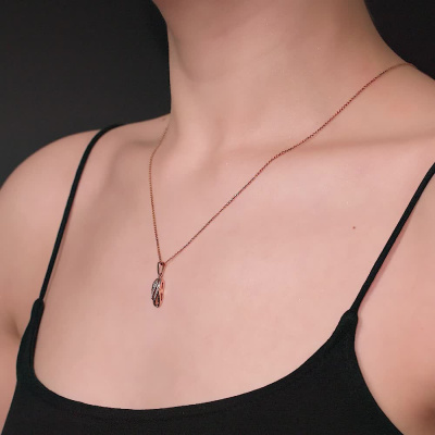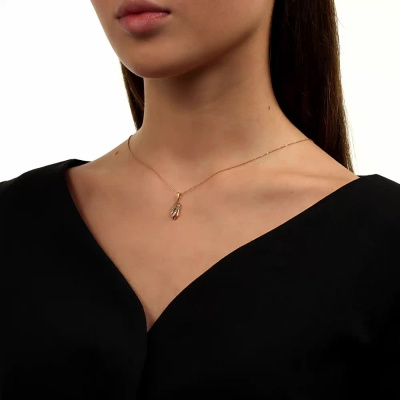 Подвеска с 13 бриллиантами природными, 0.03 карат, огранка круг 17 граней, цвет 2, чистота 2, тип огранки А; Розовое золото 585 пробы.