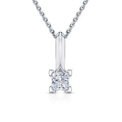 Подвеска с 1 бриллиантом природным, 0.23 карат, огранка принцесса 65 граней, цвет 3, чистота 6, тип огранки А; Платина 950 пробы.