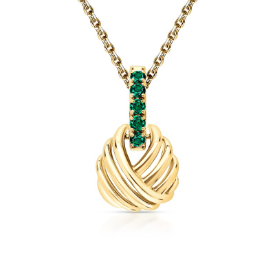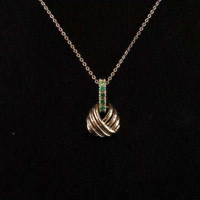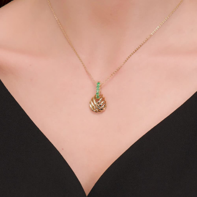 Подвеска с 5 изумрудами природными, 0.25 карат, цвет 3, чистота 3, тип огранки В; Желтое золото 585 пробы.