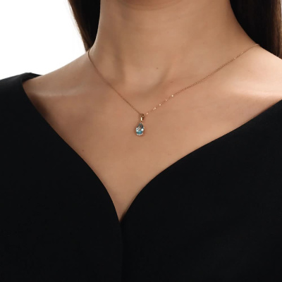 Подвеска с 5 бриллиантами природными, 0.02 карат, огранка круг 17 граней, цвет 2, чистота 2, тип огранки Б; 1 топазом скай природным, 1.49 карат; Розовое золото 585 пробы.