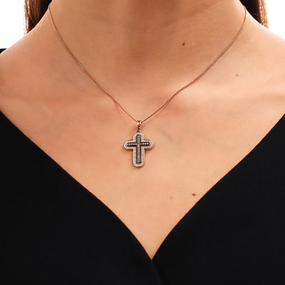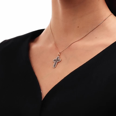 Подвеска с 55 бриллиантами природными, 0.12 карат, огранка круг 17 граней, цвет 2, чистота 2, тип огранки А; 17 бриллиантами коньячными природными, 0.27 карат, огранка круг 57 граней, цвет 7, чистота 5, тип огранки А; Розовое золото 585 пробы.