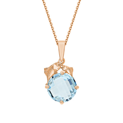 Подвеска с 1 топазом скай природным, 4.05 карат; Розовое золото 585 пробы.