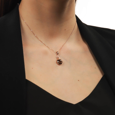 Подвеска с 1 кварцем дымчатым природным, 3.42 карат; Розовое золото 585 пробы.