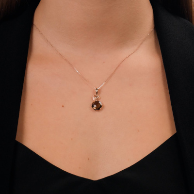 Подвеска с 1 кварцем дымчатым природным, 3.42 карат; Розовое золото 585 пробы.