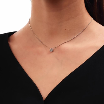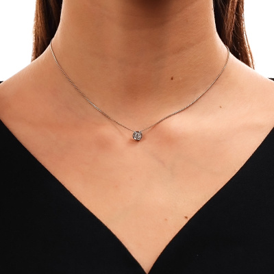 Подвеска с 1 бриллиантом природным, 0.22 карат, огранка круг 57 граней, цвет 4, чистота 6, тип огранки А; Белое золото 585 пробы.