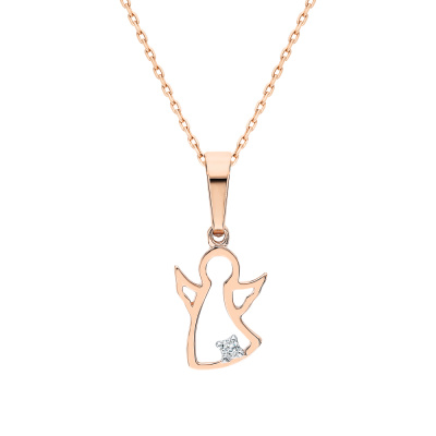 Подвеска с 1 бриллиантом природным, 0.01 карат, огранка круг 57 граней, цвет 4, чистота 5, тип огранки А; Розовое золото 585 пробы.