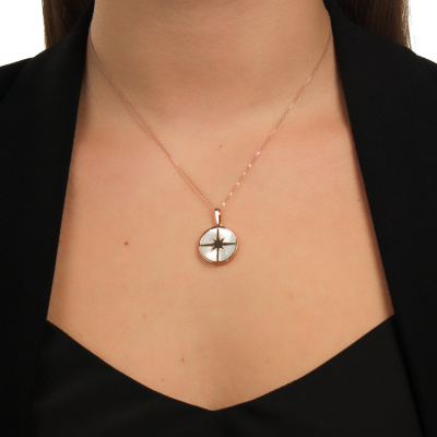 Подвеска с 1 перламутром белым природным; Розовое золото 585 пробы.