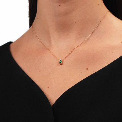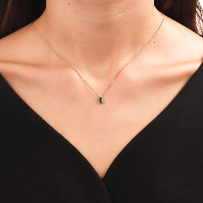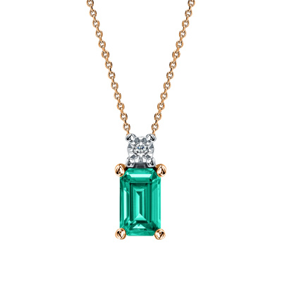 Подвеска с 1 бриллиантом природным, 0.004 карат, огранка круг 17 граней, цвет 2, чистота 2, тип огранки А; 1 гидротермальным изумрудом, 0.24 карат; Розовое и белое золото 585 пробы.