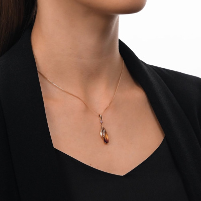 Золотая подвеска с аметриными синтетическими и аметистами природными