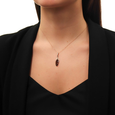 Подвеска с 1 кварцем дымчатым природным, 2.29 карат; 1 кварцем дымчатым природным, 0.05 карат; Розовое золото 585 пробы.