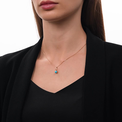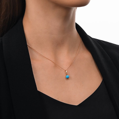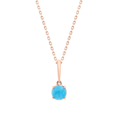 Подвеска с 1 бирюзой стабилизорованной; Розовое золото 585 пробы.