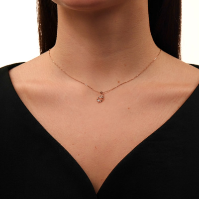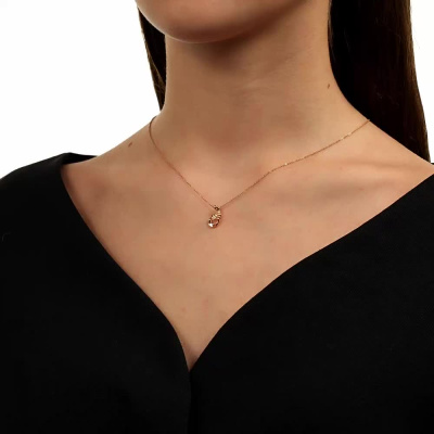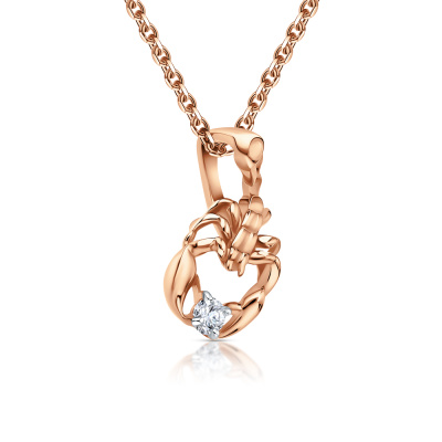 Подвеска с 1 бриллиантом природным, 0.04 карат, огранка круг 57 граней, цвет 3, чистота 6, тип огранки А; Розовое золото 585 пробы.