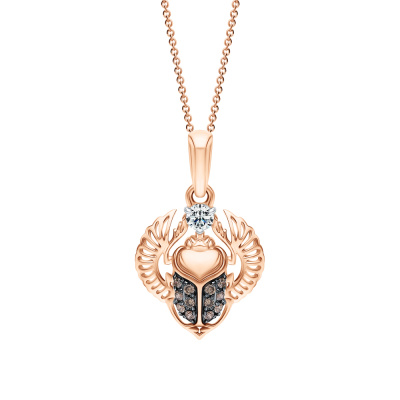 Подвеска с 1 бриллиантом природным, 0.04 карат, огранка круг 57 граней, цвет 3, чистота 6, тип огранки А; 12 бриллиантами коньячными природными, 0.06 карат, огранка круг 57 граней, цвет 7, чистота 5, тип огранки А; Розовое золото 585 пробы.
