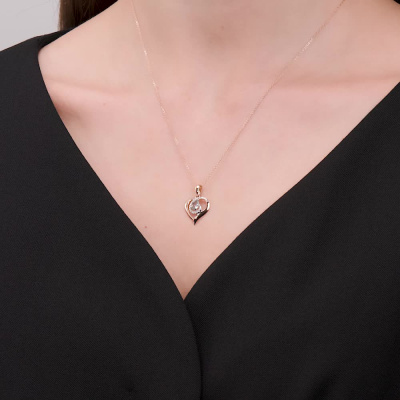 Подвеска с 18 бриллиантами природными, 0.03 карат, огранка круг 17 граней, цвет 2, чистота 2, тип огранки А; 1 топазом скай природным, 0.45 карат; Розовое золото 585 пробы.