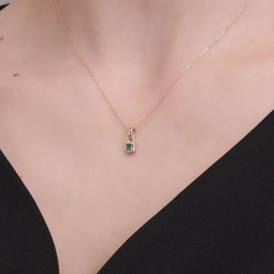 Подвеска с 12 бриллиантами природными, 0.04 карат, огранка круг 17 граней, цвет 2, чистота 2, тип огранки А; 1 гидротермальным изумрудом, 0.12 карат; Розовое золото 585 пробы.