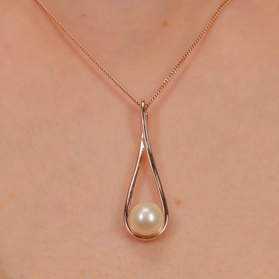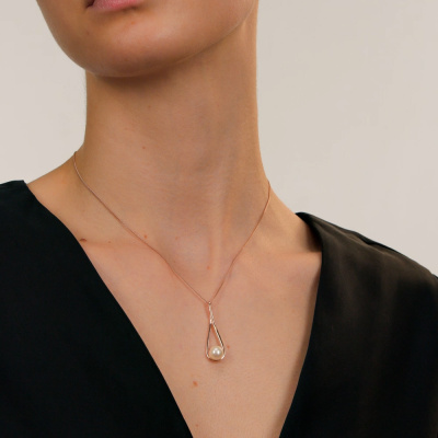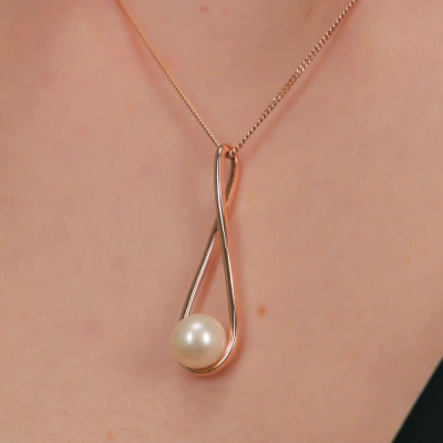 Подвеска с 1 жемчугом пресноводным культивированным белым; Розовое золото 585 пробы.