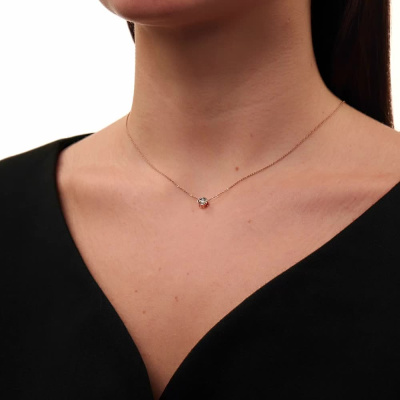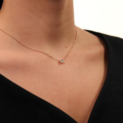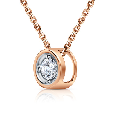 Подвеска с 1 бриллиантом природным, 0.1 карат, огранка круг 57 граней, цвет 4, чистота 6, тип огранки А; Розовое золото 585 пробы.