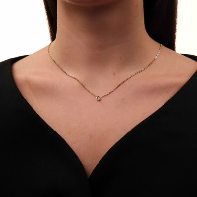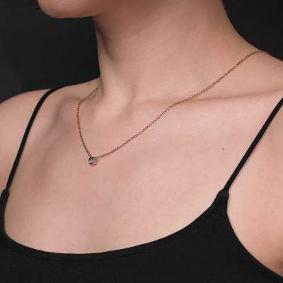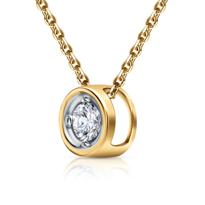 Подвеска с 1 бриллиантом природным, 0.1 карат, огранка круг 57 граней, цвет 4, чистота 6, тип огранки А; Желтое золото 585 пробы.