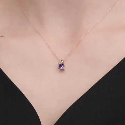 Подвеска с 1 танзанитом природным, 0.77 карат; Розовое золото 585 пробы.