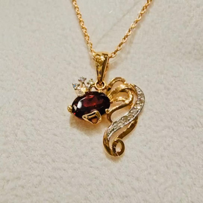 Золотая подвеска с бриллиантами природными и гранатами природными